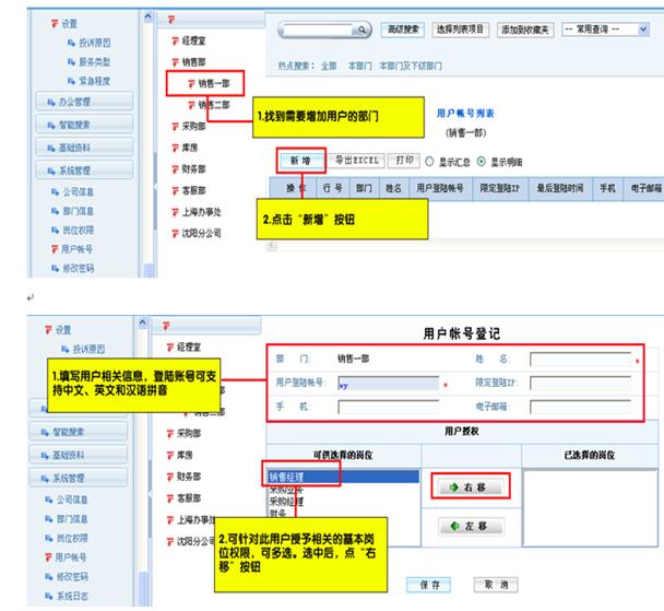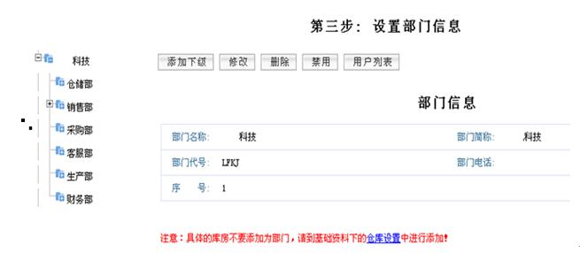 说明:只需要添加需要使用软件的部门,另外用户账号也是依据已经设置好的部门来添加的