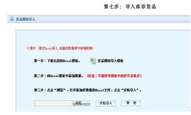特别提示:库存期初数量请盘库后,再做批量导入。