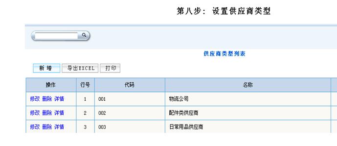 说明:(1)供货企业类型可以根据不同供货企业供应的货品类型不同,设置成原材料供货企业,成品供货企业,办公用品供货企业等等,也可以根据供货企业的信用等级分为长期供货企业,一级供货企业等等。