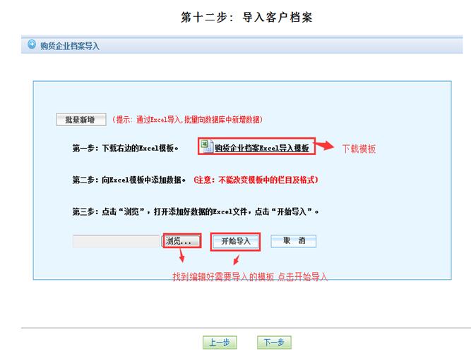 说明:(1)通过下载导入模板,将购货企业的信息批量导入系统中。