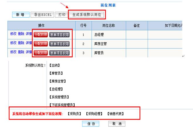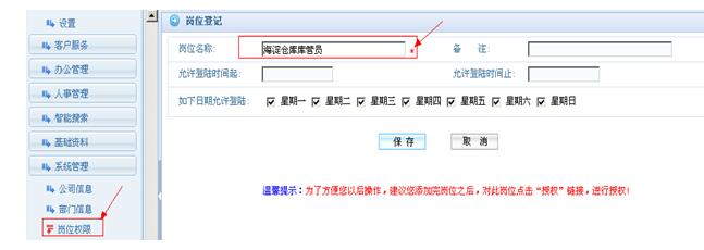 说明:目前系统中已经设置好一些重要岗位的名称和权限,您可以选择性的使用这些岗位。不需要的岗位可以去掉勾选,这样的话,这个岗位不会被系统留用。
