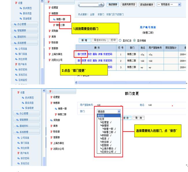 重要提示:如果您想添加某个部门的下一级信息,请选择要添加的部门名称;例如:(1.)先选中一级栏目——“销售部”(2.)点击 “添加下级”按钮,进行信息填写,点击“保存”按钮即可。