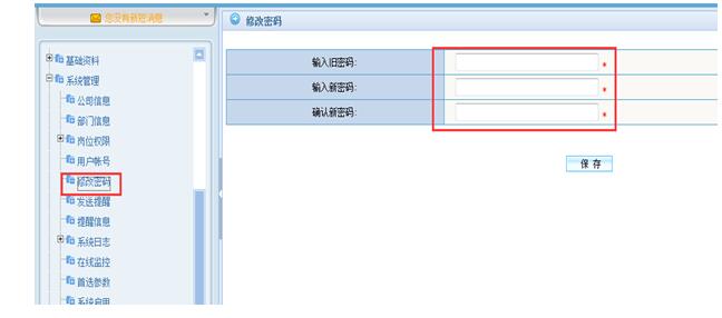 第二步:点击“修改密码”,在右侧列表中,输入新、旧密码,点击“保存”按钮。