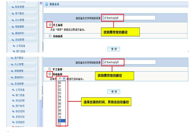 (2)选择“自动备份”,设置自动备份时间后,点“保存”按钮。