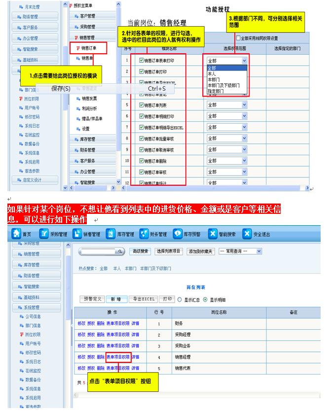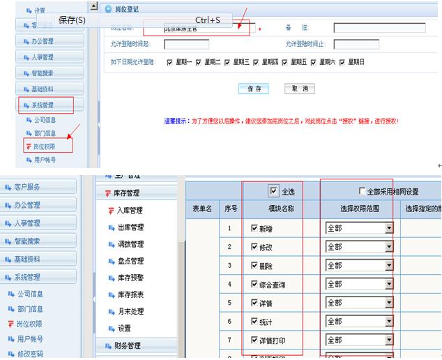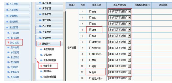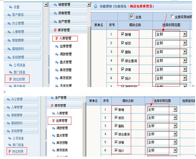 2.是出、入库单可以给他全部的权限,而不是只给本部门的权限。这样通过控制仓库即